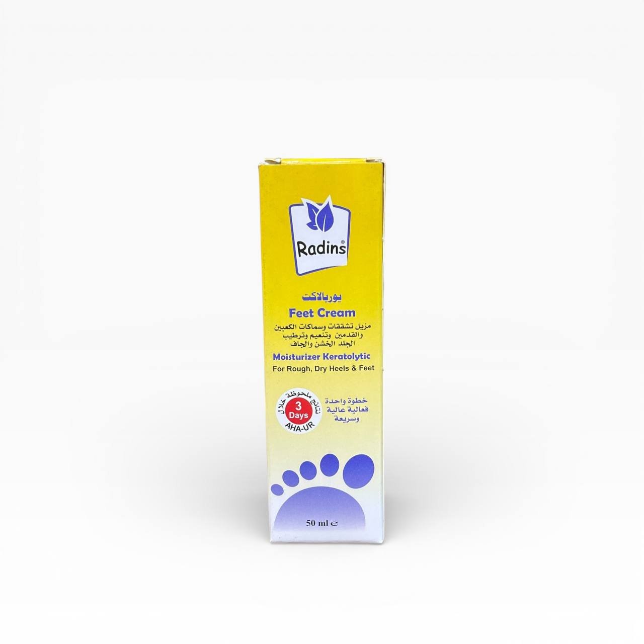 يزيل التشققات والسماكات في الكعبين والقدمين.